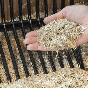 - Ścielenie: rozłóż 3–6 balotów w boksie o powierzchni 9–12 m², warstwa 5–7 cm.