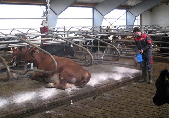 Środowisko to pierwsza wśród czterech najważniejszych przyczyn powstawania stanów zapalnych wymion oraz schorzeń racic. Ogromne znaczenie w tej kwestii ma czystość podłoża, na jakim stoją i odpoczywają krowy. Największe ryzyko rozprzestrzeniania się zakażeń występuje w oborach wolnostanowiskowych. Ponieważ poszczególne legowiska zajmowane są przez różne krowy, to w przypadku każdej z nich, często dochodzi do kontaktu końcówek strzyków wymienia z podłożem, a w następstwie wnikania do kanałów strzykowych bakterii chorobotwórczych. Bakterie mogą znaleźć się w ściółce w wyniku wycieku mleka z chorych na zapalenie wymienia strzyków. Patogeny mogą być również przenoszone między racicami bydła i powodując zagrożenia dla stanu zdrowotnego. Obok wydzielin chorych zwierząt, źródłem zakażenia w oborach są również pasze i rozkładająca się ściółka. W m3 powietrza może znajdować się od kilku do kilkudziesięciu milionów drobnoustrojów i grzybów. Sucha dezynfekcja pomaga ograniczyć ilość chorobotwórczych patogenów, jej działanie polega na eliminacji wilgoci oraz utrzymywaniu wysokiego pH w podłożu, co przeciwdziała rozwojowi chorobotwórczych bakterii, wirusów i grzybów.